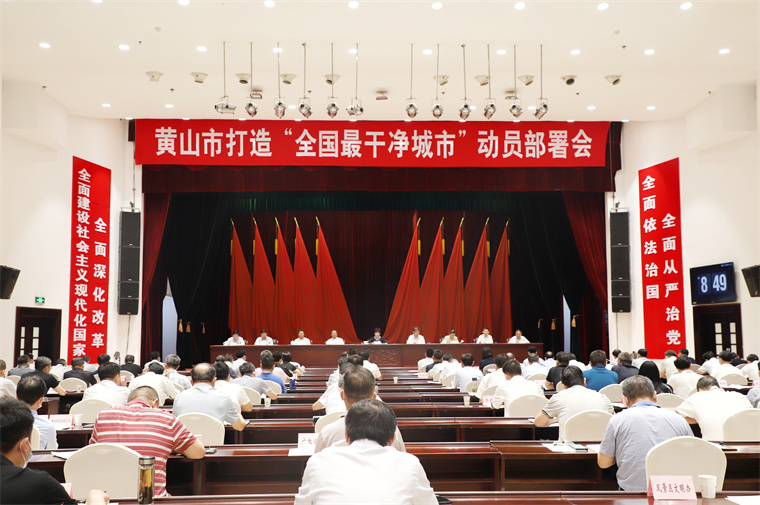 6月24日上午,黄山市委市政府召开打造“全国最干净城市”动员部署会,市委书记凌云作动员讲话。