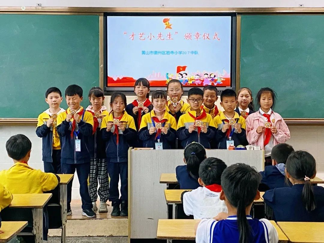 图为徽州区岩寺小学“小先生”特色章颁章现场
