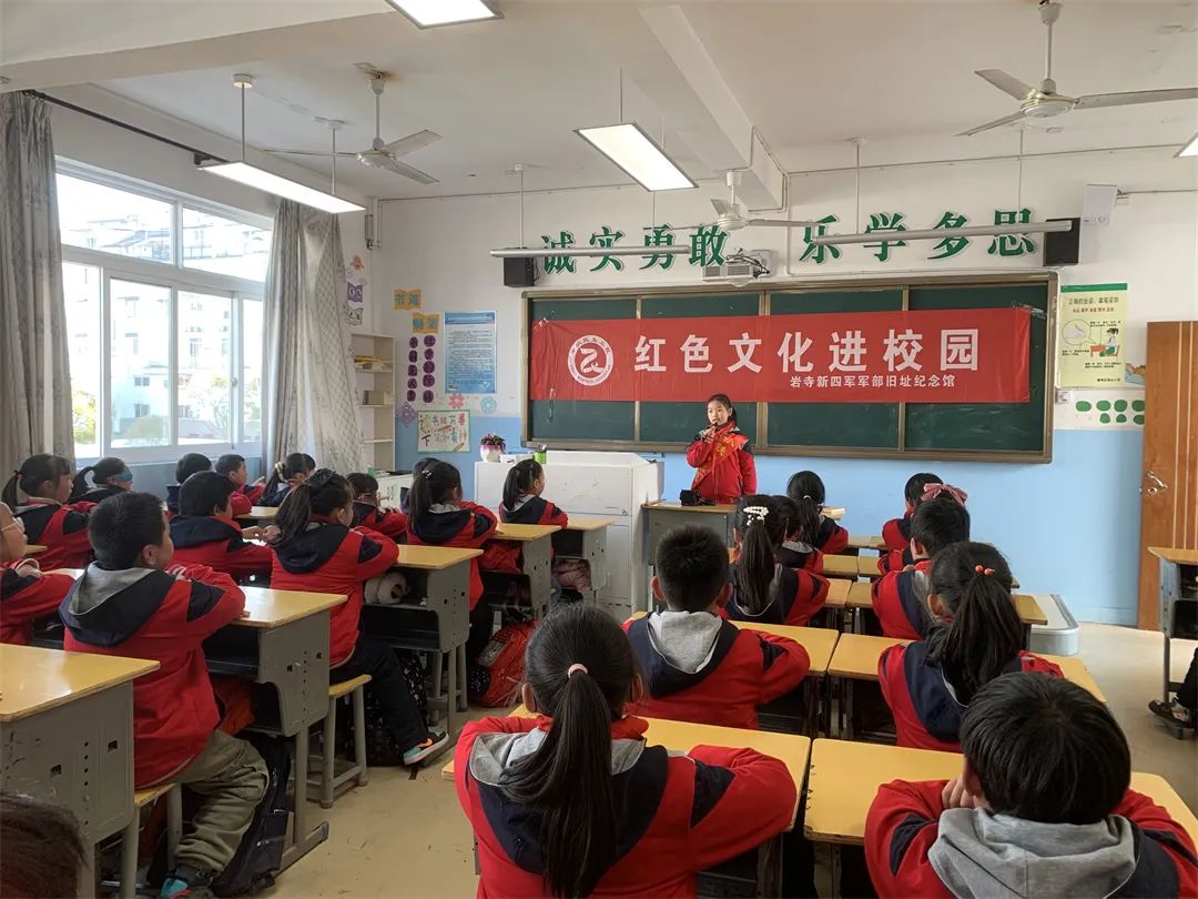“在得知汪五婆病重的消息后,叶挺军长派军医上门替她医治,将她从‘死神’手中救了回来”“汪五婆提着一篮新鲜白菜,来到金家大屋答谢叶挺军长”……5月31日,在“红色文化进校园”活动中,来自岩寺新四军军部旧址纪念馆的讲解员为徽州区富溪乡呈阳村呈阳小学的学生们讲述了红色故事《叶挺与汪五婆》。作为安徽省爱国主义教育基地,岩寺新四军军部旧址纪念馆常态化开展的“红色文化进校园”活动是黄山市培育时代新人的重要载体,该纪念馆当下也已成为对未成年人开展爱国主义教育的重要阵地。
