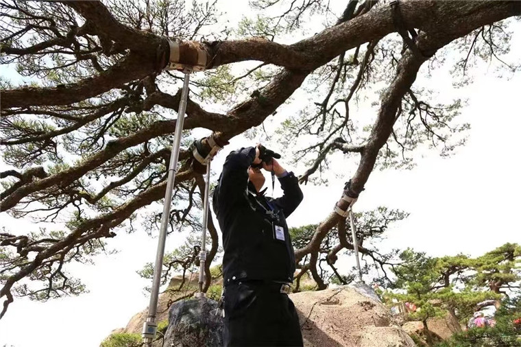 △ 胡晓春查看迎客松状态。
