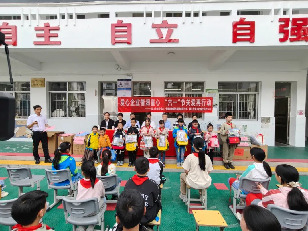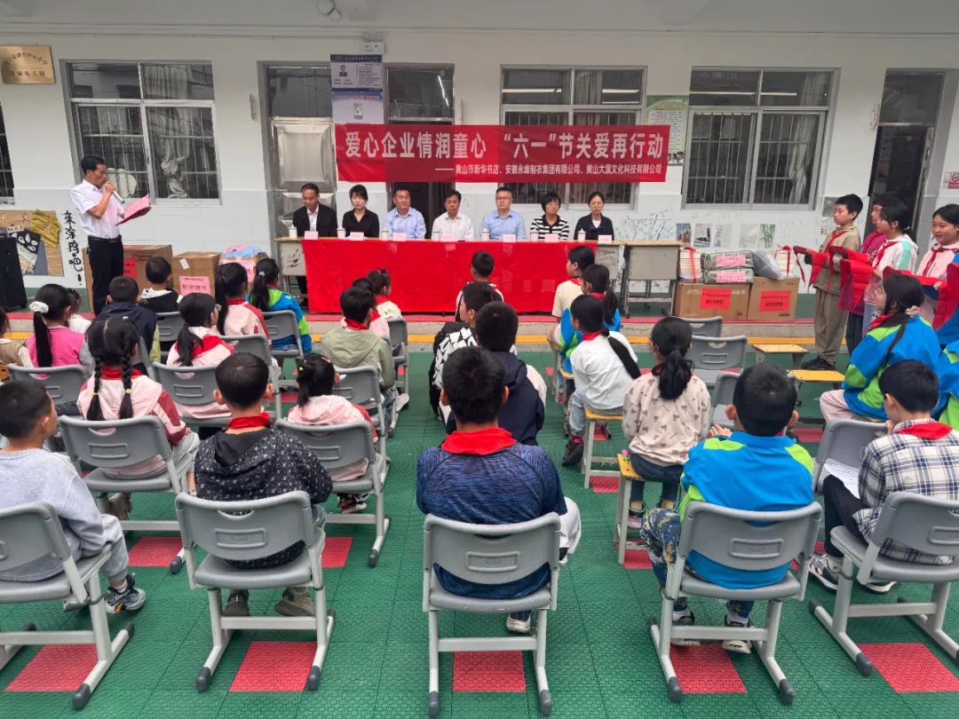 在“六一”国际儿童节即将到来之际,5月29日上午,由市委宣传部(市文明办)牵头,联合黄山市新华书店、安徽永峰制衣集团、黄山大漠文化科技有限公司3家爱心企业,赴休宁县璜尖中心小学、源芳中心小学2所学校开展“爱心企业情润童心,‘六一’节关爱再行动”公益助学活动。市委宣传部副部长、二级调研员胡武军出席。