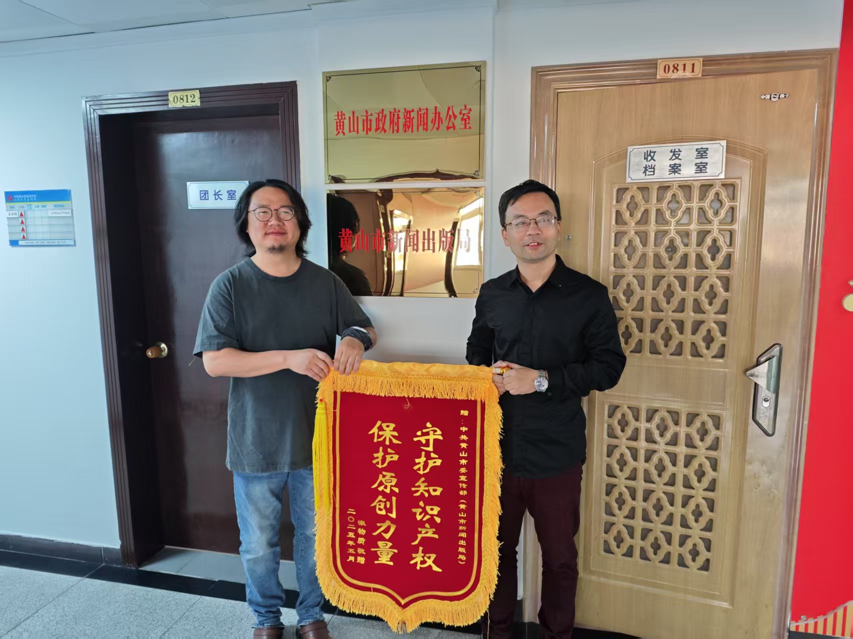 2025年5月15日,徽物质公司向市委宣传部赠送锦旗,上书“守护知识产权 保护原创力量”。公司法人代表谢一威表示,“市委宣传部快速有效地对菠菜论坛的版权侵权进行处理,让我们深刻感受到黄山市对文旅企业的重视,对知识产权的重视,我们公司将继续扎根黄山,设计更多徽文化精品,为黄山经济发展做出自己的贡献!”