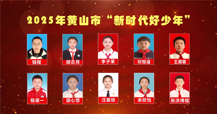 随后,现场发布了2025年黄山市“新时代好少年”名单,经广泛发动、逐级推荐、评议遴选等环节,钱程等10名同学入选2025年黄山市“新时代好少年”。他们在科技创新、文化传承、公益服务、自立自强等方面表现突出,充分展现了新时代青少年昂扬向上、奋发有为的良好形象。