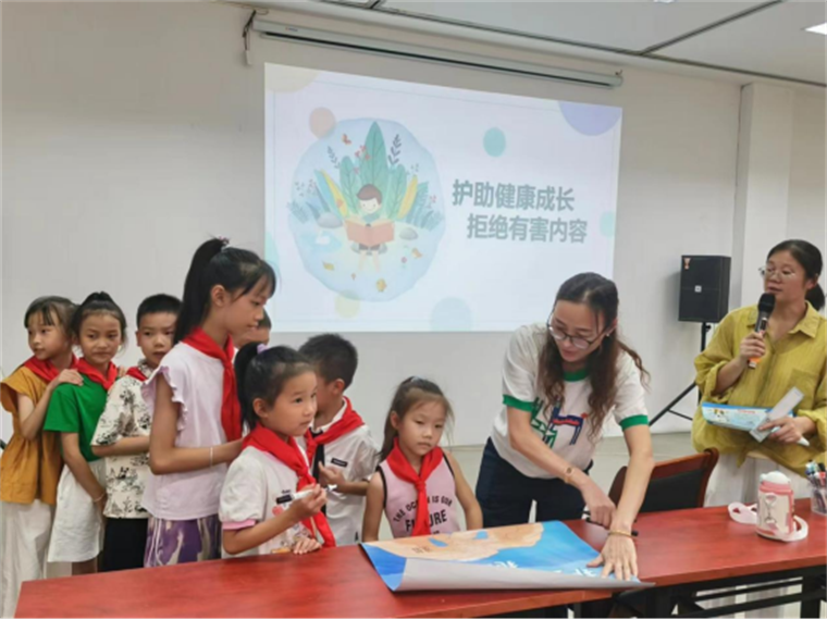 二是深化宣传教育,筑牢思想防护墙。充分利用村务公开栏、电子显示屏、村民微信群等载体,广泛张贴“扫黄打非”宣传横幅,推送相关法律法规和典型案例,让“扫黄打非”观念家喻户晓、深入人心。深度融合“绿书签”行动,精心组织“护苗·开学季”、“绿书签·伴成长”系列宣传进村居活动。通过组织签名承诺、自制绿书签、制作“扫黄打非”非遗竹编画等形式,引导青少年自觉远离和抵制有害信息及非法出版物。结合平安学堂、七彩暑假、亲子家庭教育等活动,通过观看宣传视频、发放宣传册、绿水签等形式,扩大“扫黄打非”宣传力度。今年以来共开展“扫黄打非”系列宣传活动9场,发放“扫黄打非”宣传册2000余份,绿书签1500张,覆盖儿童超1000人次。