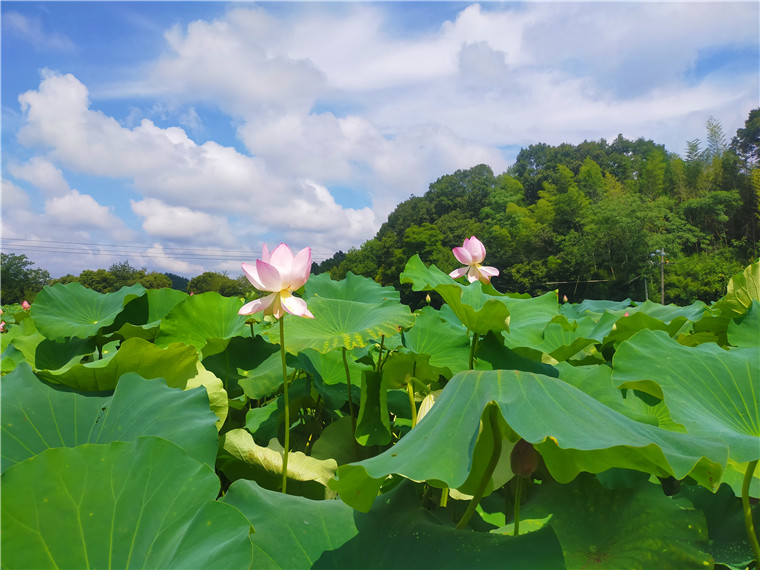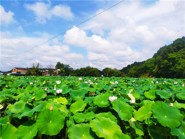 万绿丛中数点红,荷花盛开在其中。盛夏季节,休宁县海阳镇盐铺村、万安镇钟塘村、五城镇月潭村、齐云山镇典口村等地的荷塘里,碧绿的荷叶与一簇簇粉红色、深红色的荷花相映成趣,微风拂过,亭亭玉立的荷花随风轻轻摇曳,散发出淡淡清香,令人心旷神怡,吸引不少游客前来打卡拍照。