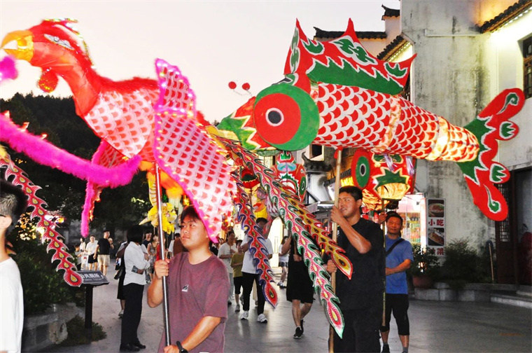 7月18日,花灯表演队伍在黟县西递景区巡演。盛夏时节,西递景区推出花灯巡游活动,以各色花灯点亮千年街巷,带动夏季文旅消费热潮。