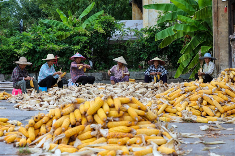 8月7日是立秋时节,徽州区千年古村呈坎村开启晒秋模式。当日,村民们趁着晴好天气,将收获的玉米、辣椒、南瓜等农作物晾晒于广场,画面喜庆吸睛。