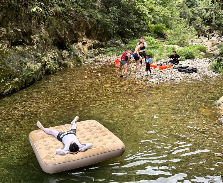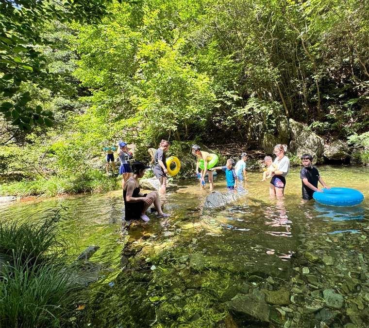 祁门县古溪乡谢家村凭借着得天独厚的自然环境、质朴的古村落、潺潺的“玻璃水”贴心的“安全服务”尤其吸引着来自江浙沪的游客,成为他们夏日玩水的小众“宝藏地”。谢家村坐拥得天独厚的自然环境,夏日平均气温比城区低5-8℃,堪称天然“避暑氧吧”。谢家村的水,更是夏日最动人的馈赠。际上河沿村而下,随着蜿蜒的溪流,随处可见清澈见底的浅滩与深潭,随手一拍便是满屏的绿意与清凉。