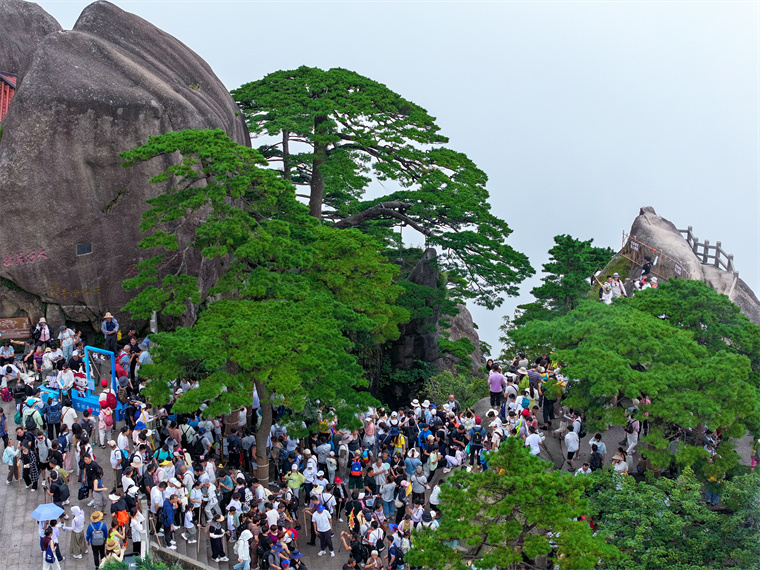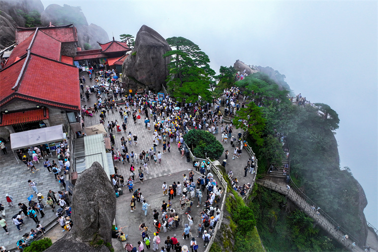 8月22日,黄山风景区云雾缭绕,美若仙境,前来避暑纳凉的游客络绎不绝。