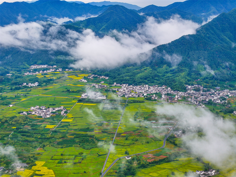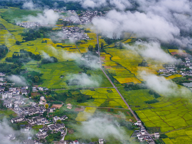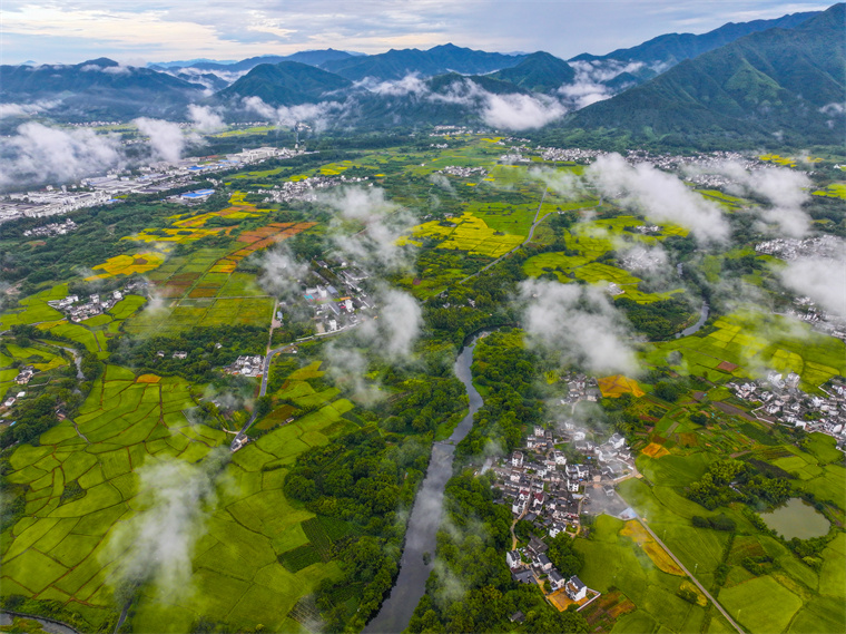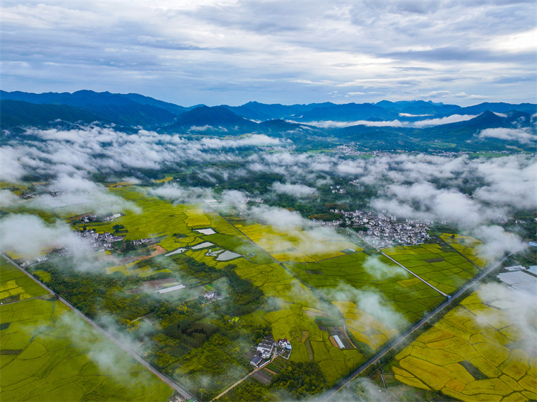 初秋时节,走进黟县碧阳镇,黄绿相间的稻田与苍翠的青山、粉墙黛瓦的徽派民居相映成趣,形成了一幅绝美的田园画卷。