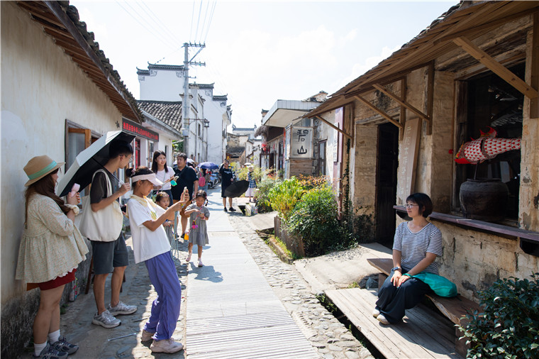 “十一”黄金周游客为避开西递、宏村等热门景区的人潮,选择探访附近的碧山村。这里没有摩肩接踵的喧嚣,游客们三三两两在乡间小道漫步,逛知名的“碧山书局”,在充满文艺气息的古村中打卡拍照,享受了一份难得的“清静自在”,体验了别具一格的徽州风情。