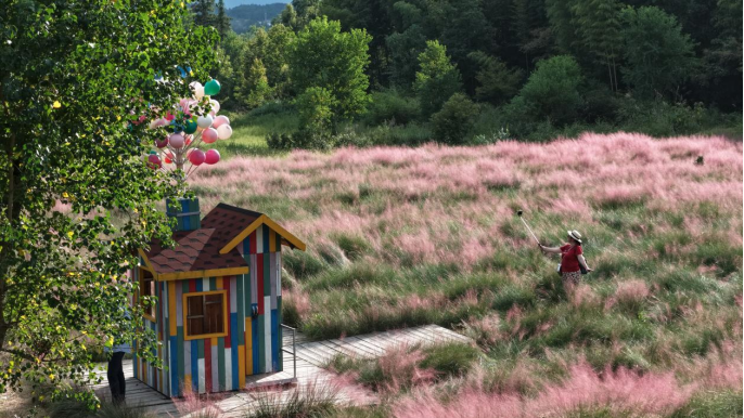黟县塔川秋日美景正当时,五彩斑斓的小屋与粉黛乱子草相映成趣,勾勒出诗意田园画卷。独特的乡村秋景吸引众多游客前来打卡。