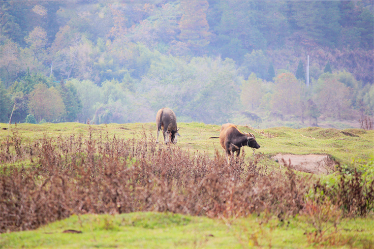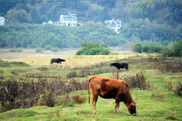 初冬时节,新安江畔的歙县雄村镇柘岱村的大片草地上,牛群在和煦的冬阳里悠闲漫步、觅食,与青山碧水、粉墙黛瓦的民居构成一幅宁静而生动的乡村画卷。
