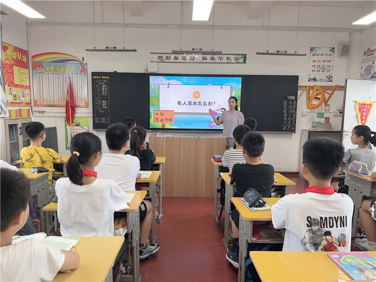 与此同时,当天,学校25个班级先后开展了防溺水安全知识主题班会。班会上,教师向同学们讲述了溺水事故的特性和发生的客观原因,阐明了防溺水的重要性,讲解了基本的防溺水技能,给学生敲响了警钟,增强了学生防溺水的安全防范意识,进一步提高了大家自护、自救的能力。