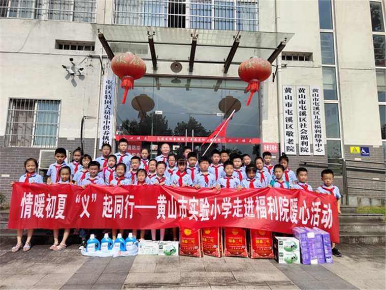 乐善奉献新手牵,博爱互助暖人心,近日,黄山市实验小学二(3)班的师生“爱心涌动,情暖初夏”,在江心洲广场举行了爱心义卖活动,进行募集爱心善款,并于7月16日带着满满的爱心来到黄山市福利院,看望留守儿童和孤寡老人。同学们用自己的行动奉献爱心,感悟大爱奉献的精神。