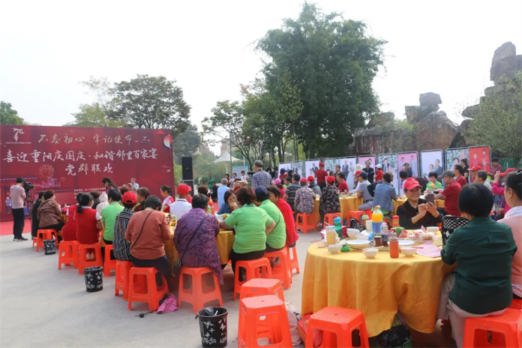 黄山区甘棠镇龙西社区“银龄百家宴”文明实践项目以“银龄志愿者”为服务目标,结合重阳节等传统节日,通过举办“百家宴”的形式,帮助老年群体搭建“庆重阳、品美食、悦心情”的敬老平台,在全社会营造爱老、敬老、尊老的氛围,在全社区带动爱心企业参与公益性事业,反哺社会回馈老年群体,引领老年人参与到社区楼栋信息宣传、小区巡防、托管班看护等社区服务中来。