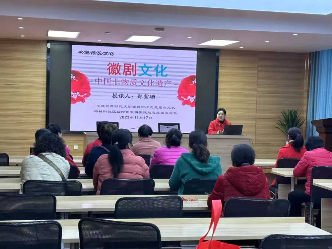 戏曲艺术普及。依托村新时代文明实践广场、大舞台等公共文化设施,组织文化志愿者开展戏曲知识讲座等活动,加强戏曲文化在乡村的传播;开展戏曲鉴赏活动,提升群众对徽戏的兴趣;开展戏曲排演观摩、角色和行当体验互动等活动,让村民多渠道、多途径参与戏曲体验。