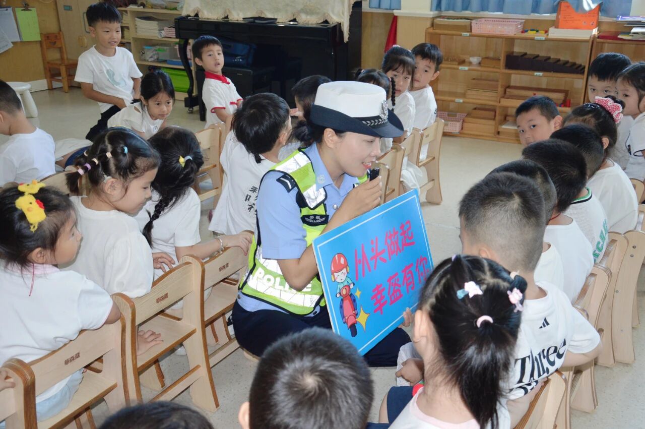 为提高国庆假期幼儿的安全意识与自我防护能力,筑牢校园交通防线,9月26日上午,黄山市公安局徽州分局交管大队民警辅警走进徽州区钧宝幼儿园,开展了一场以“知危险、会避险”为主题的生动有趣的交通安全宣传活动。