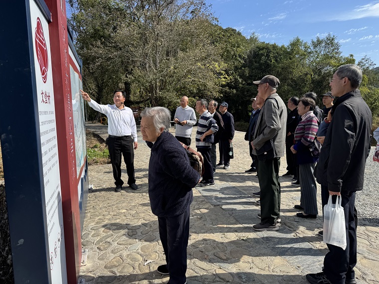 在讲解员的引领下,老干部们首先漫步于文堂老街,参观了永锡堂、新安中医药博物馆等标志性景点。大家详细了解了文堂村深厚的历史文化、特色产业建设以及未来的文旅发展规划,在感受千年古村落独特魅力的同时,也加深了对博大精深的徽州文化的理解与热爱。随后,队伍走进文堂红色文化展览馆,馆内陈列的一本本泛黄的书籍、一张张珍贵的老照片、一件件革命先辈使用过的旧物品,无声地诉说着那段烽火岁月。老干部们在此驻足凝望,仿佛回到了那个艰苦奋斗的革命年代,接受了深刻的思想洗礼。最后,他们在展览馆前合影留念,将此次红色记忆定格。