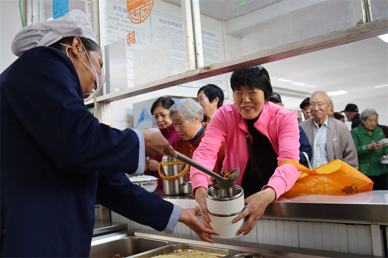 “菜好吃,选择也多,今天还有重阳糕和杂粮馒头领,同聚楼真是有心了!”一位78岁的老人笑着说道。不少老人表示,自从社区有了这个助餐点,不仅吃饭方便、价格实惠,更感受到了社会对他们的关怀与尊重。当天,共有近80位社区老人前来就餐。