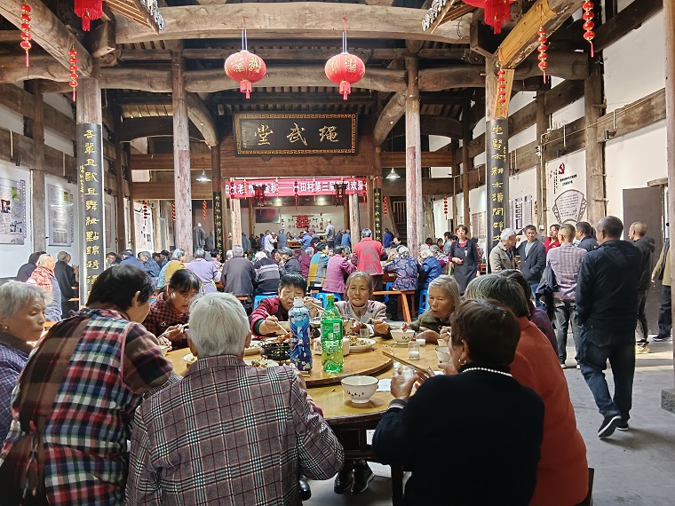 乡贤助力送温暖,重阳聚餐增情谊。各村新时代文明实践站积极举办了形式多样的重阳活动。桃林村在外乡贤回村献爱心,为村里老人送上大米、食用油等生活必需品,乡贤们亲切询问老人需求,承诺持续帮扶;浯田村和古楼坦村则分别举办重阳聚餐宴,邀请村中老人齐聚一堂,共享丰盛菜肴,不少老人感慨:“大家聚在一起过节,感觉就像一家人!”江田村则组织工作人员走访入户,为高龄老人送去慰问品,并致以“重阳安康”的节日祝福。