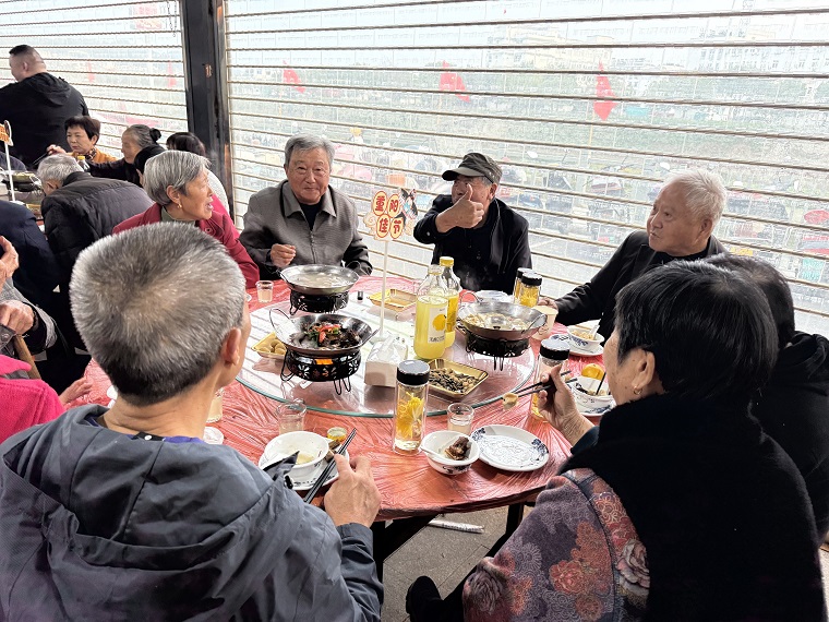 宴席上,鸡汤、长陔三宝、红烧肉、牛排煲、炒米糊等一道道美味佳肴陆续上桌,在圆桌上传递着分享的快乐。老人们围坐在一起,品佳肴、话家常,脸上洋溢着幸福的笑容。许多年轻人自费陪餐,让这份重阳情超越了年龄界限,汇聚成和谐的孝老爱亲之情。