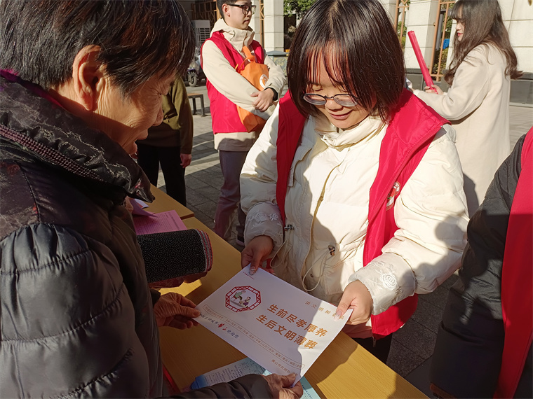活动中,志愿者首先向居民们讲解什么是移风易俗和推进移风易俗的意义,通过分享身边人身边事的先进典型和事迹,引导居民们树立正确的价值观和生活方式。同时,他们还前往居民小区、临街商铺等地,向居民们发放了宣传资料,围绕“喜事新办、崇尚节俭、丧事简办、摒弃陋习、健康生活、尚俭戒奢”等内容讲解移风易俗知识,呼吁大家从身边的点滴小事做起,抵制婚丧嫁娶大操大办、高额彩礼,争做文明新风的积极倡导者和自觉践行者。