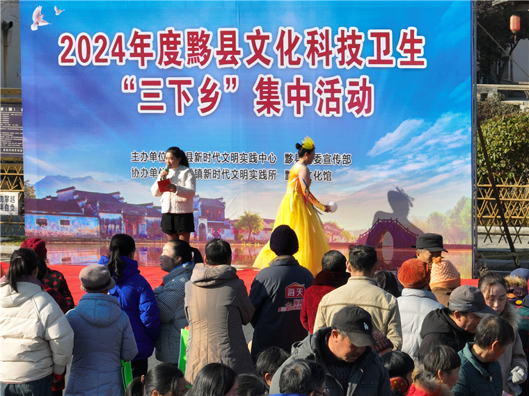 1月25日下午,2024年黟县文化科技卫生“三下乡”活动在宏村镇雉山村新时代文明实践广场举行。