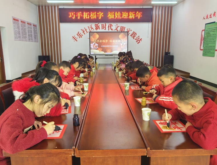 为弘扬中华优秀传统文化,营造欢乐祥和的节日氛围,1月4日上午,歙县丰乐社区新时代文明实践站组织了一场别开生面的“巧手拓福字 福娃迎新年”活动。
