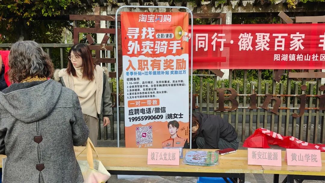 “育才同行”人才发展区。中班党支部打造的儿童友好专区里,志愿者们为孩子们送上了可爱的小礼物,传递对儿童成长的关爱;饿了么党支部则开展就业宣传,为求职者带来实用岗位信息……