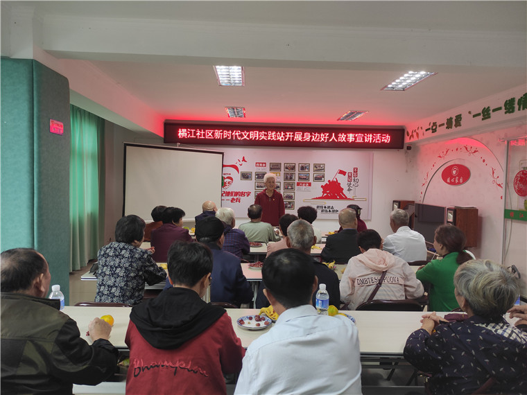 为充分发挥身边好人的示范引领作用,大力弘扬社会主义核心价值观,10月20日上午,休宁县海阳镇横江社区新时代文明实践站开展身边好人故事宣讲活动,通过讲身边人、说身边事,发现真善美,汇聚正能量,营造崇德向善、见贤思齐的浓厚氛围。本次活动由万秀巷东网格党支部的支部书记、横江社区平安大管家志愿服务队的大管家程慧芳进行宣讲。
