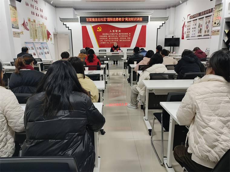 志愿服务打通普法“最后一公里”。龙北社区新时代文明实践站联合甘棠司法所杨所开展宪法知识讲座。“宪法是一个主权国家或地区的具有最高法律效力的根本大法,通常规定一个国家或地区的社会制度、国家制度、国家机构和公民的基本权利与义务等……”在活动现场,讲述了中国特色社会主义法律体系、新中国宪法的发展历程。社区干部、网格员分发了相关的宣传品,居民们积极讨论,现场学习氛围浓厚。大力弘扬宪法精神,推动全民“尊崇宪法、学习宪法、遵守宪法、维护宪法、运用宪法”,传播志愿服务理念,建设社会主义法治文化。