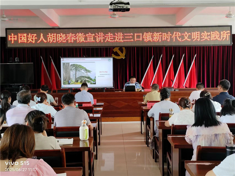 6月27日,在中国共产党成立104周年即将来临之际,一场意义非凡的主题微宣讲在黄山区三口镇新时代文明实践所热烈开讲,全国人大代表、全国劳模、“中国好人”、迎客松第十九任守松人胡晓春同志以《我要像守护生命一样守好黄山迎客松》为主题,为镇村干部群众带来了一场触动心灵的精神洗礼。