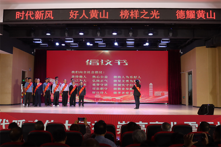 活动现场,通过人物短片、现场讲述等方式展示了新当选“黄山好人”的先进事迹,4位“黄山好人”代表分享了他们的感人故事,并与现场观众互动交流,展现了他们坚守平凡、身体力行,为传播真善美、传递正能量奉献了光和热。
