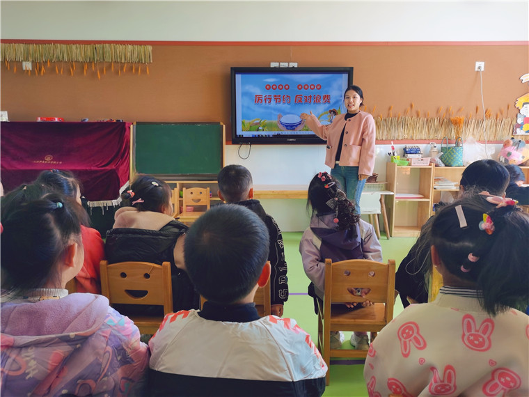 为落实立德树人根本任务,牢固树立勤俭节约意识,促使幼儿养成良好的饮食习惯,11月21日,黟县渔亭幼儿园开展了“制止餐饮浪费,培养节约习惯”主题教育活动。