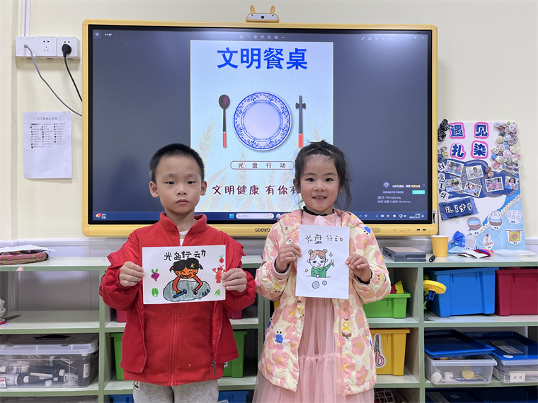 “今天不剩饭,从我做起”“勤俭节约、光盘行动”……走进班级,即可看到这样的宣传标语和幼儿绘制的宣传画,有的班级还布置了“光盘行动”光荣榜,让幼儿在潜移默化中强化节约意识,养成节约习惯。