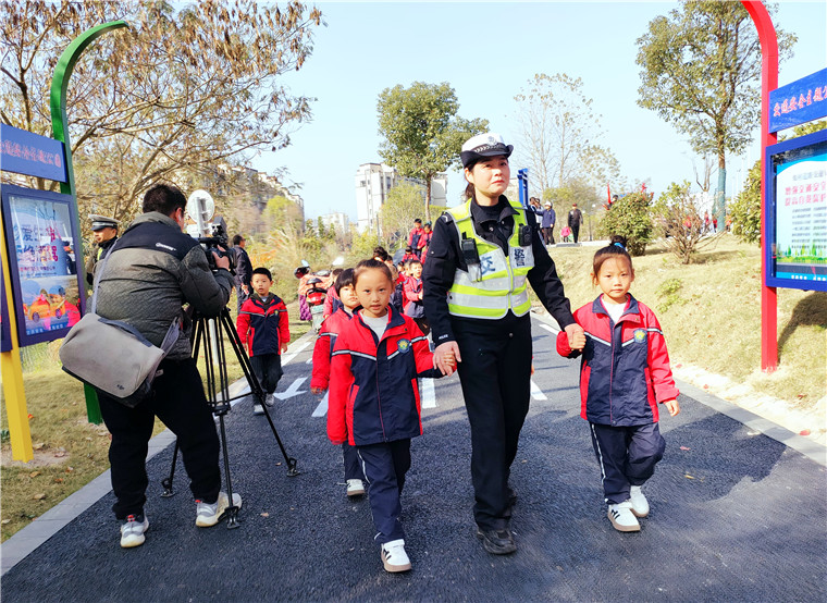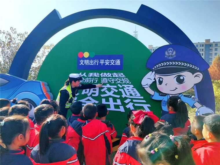 活动中,交警叔叔、阿姨带领小朋友们游览体验县交警大队建设的交通安全主题公园,通过提示讲解、互动问答的方式,用生动活泼、通俗易懂的语言向小朋友们介绍公园步道内设置的交通宣传栏、交通安全标志、地面交通信号等,并通过“发放传单”“小小交警”、交通标识知多少、有奖竞答等环节,引导小朋友们进一步掌握常见的道路交通标识、日常交通安全知识。