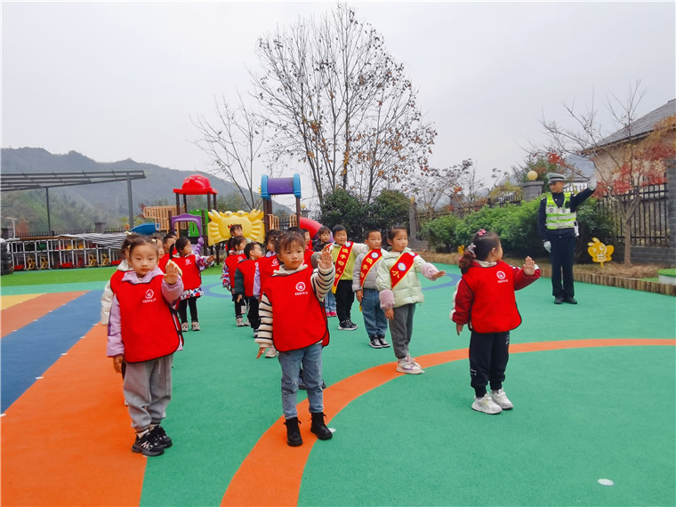 手势学习,提升意识。结合幼儿年龄特点,交警向小朋友们展示了交通指挥手势操,让小朋友们了解了各种交通手势的含义,孩子们看得仔细,学得认真,进一步提升了交通安全意识。