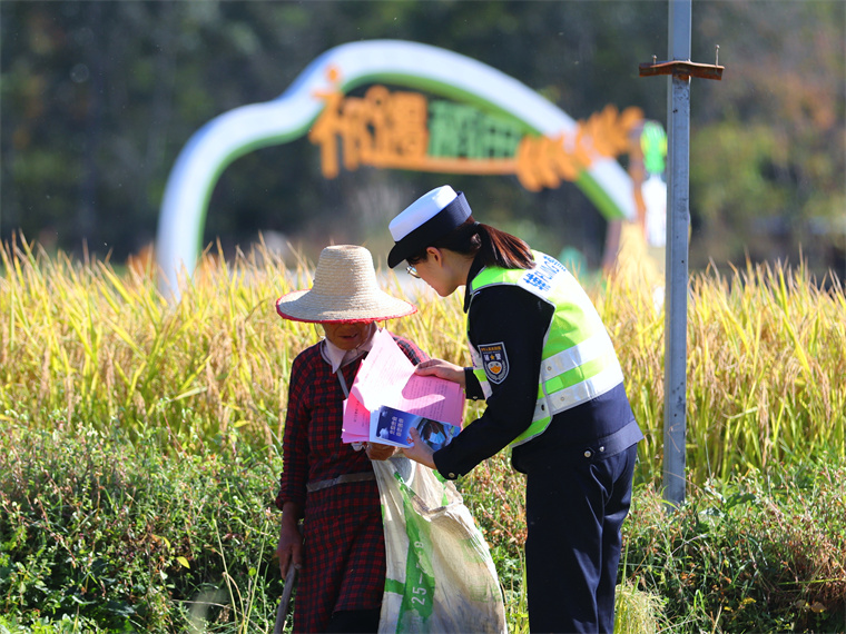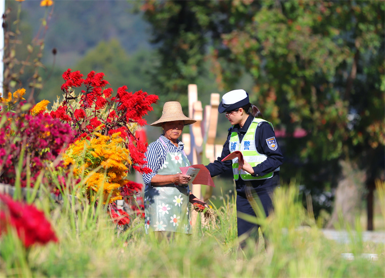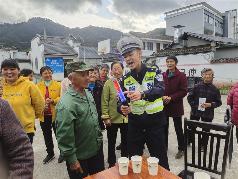 交通安全进农村,文明交通入万家。为进一步做好秋冬季节农村道路交通事故预防工作,近日,祁门县公安局交管大队民警辅警深入辖区乡村、走到群众身边,开展“花样”交通安全宣传活动,话安全、护平安、接地气、入人心,筑牢农村地区道路交通安全防线。