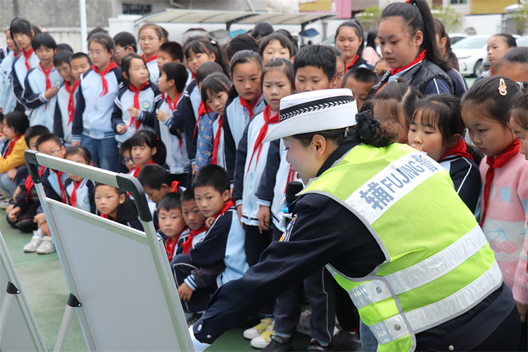 萌娃互动趣味多。交警走进安凌中心学校,开展“交警进校园 交规入童心”安全宣讲活动,把交通安全知识带进校园。紧贴学生上学放学出行实际和校园周边道路交通状况,用通俗易懂的语言,通过展示交通标识、趣味问答的形式向同学们介绍了交通法规、道路标志和交通信号灯的含义,孩子们踊跃举手发言,现场气氛热烈。现场,交警还以通俗易懂的语言向同学们讲解如何正确过马路,乘坐电动车如何正确佩戴安全头盔,乘坐小型轿车下车时如何正确开车门等安全小知识,呼吁同学们争当道路交通文明的参与者和宣传员。