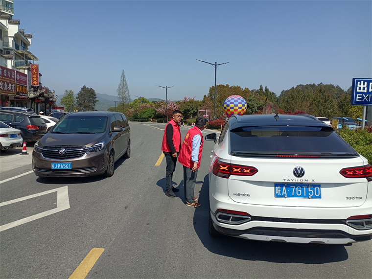 同时,在太平渔村、水上运动中心、码头停车场周边等6个关键点位,30余名志愿者严阵以待。他们身穿红马甲,用专业的手势和耐心的态度,积极开展交通疏导工作,引导车辆有序停入停车位,有效缓解了景区周边的交通压力,保证了道路的畅通无阻。面对路段内出现的各类纠纷,志愿者们迅速介入,协调处理,还热情解答游客的旅游咨询,为他们提供详尽的游玩建议。志愿者王飞扬感慨道:“清明假期,太平湖风景区停车场几乎时刻处于饱和状态,我们志愿者坚守在这里,指挥停车秩序,虽然忙碌,但看到一切井然有序,内心充满成就感。”
