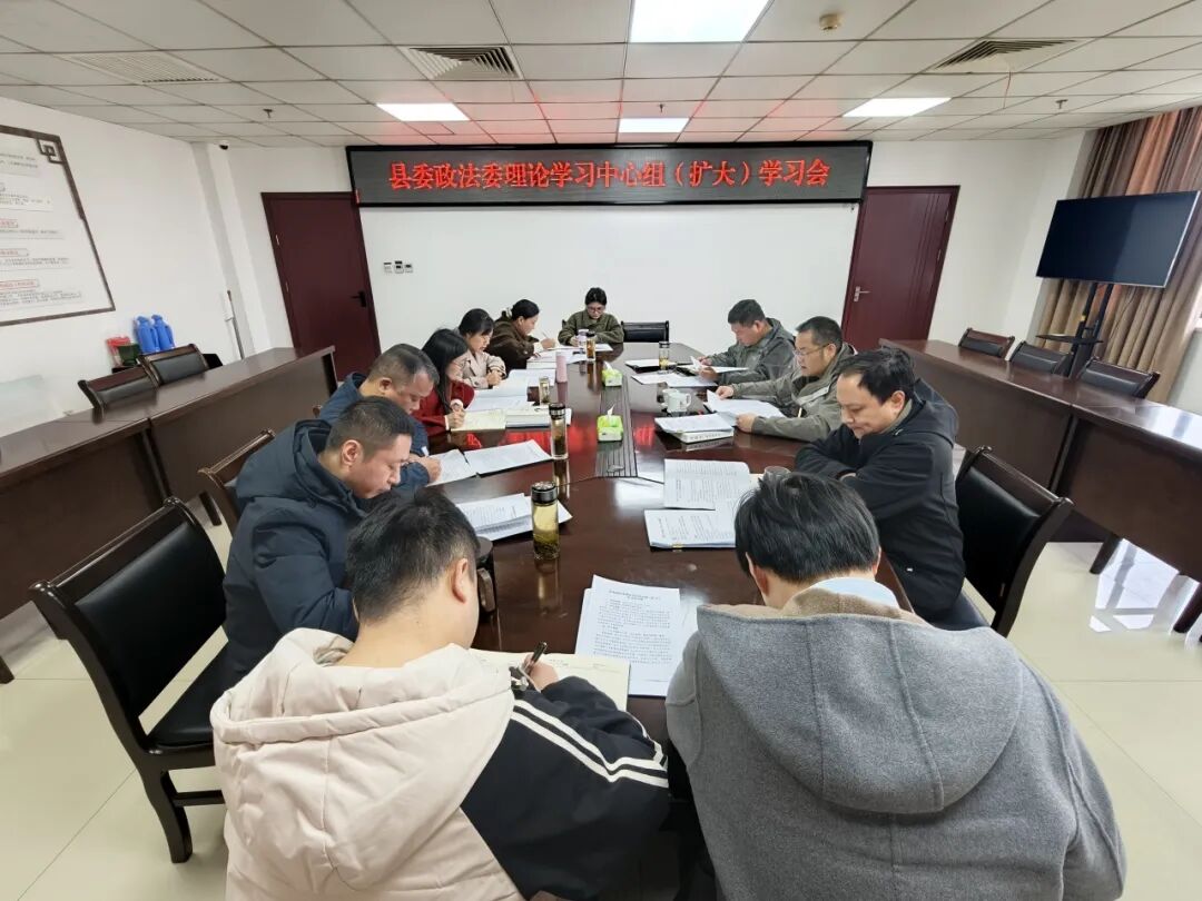11月27日上午,休宁县委政法委机关召开理论学习中心组(扩大)学习会,县委常委、政法委书记程荣刚主持会议并讲话,委机关全体干部职工参加会议。