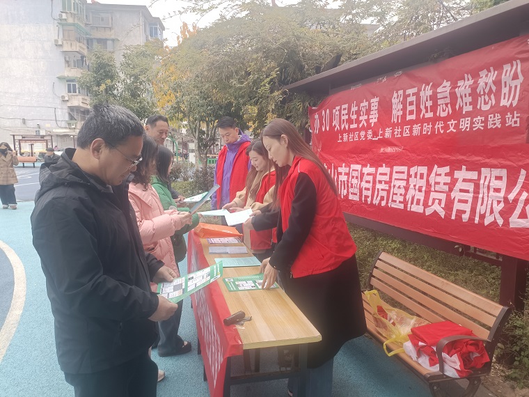 为筑牢党建联建桥梁纽带,把民生服务送到群众身边。12月5日上午,屯溪区上新社区党委联合黄山市国有房屋租赁有限公司党支部在上新民族团结小公园开展“办30项民生实事,解百姓急难愁盼”主题宣传活动。