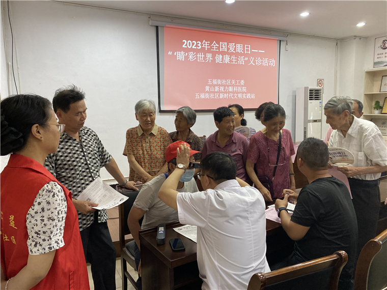 为更好地服务社区居民,提高居民爱眼、护眼健康意识,6月15日,屯溪区五福街社区新时代文明实践站联合黄山新视力眼科医院开展“2023年全国爱眼日——‘睛’彩世界 健康生活”义诊活动。