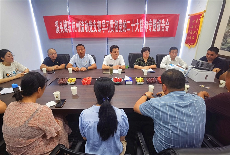 党员在哪里,党的二十大精神就宣传到哪里。7月25日,歙县溪头镇“流动党课”走进驻杭州流动党支部,组织开展学习宣传贯彻党的二十大精神专题报告会,镇党委副书记江平波带队并为流动党员作宣讲。