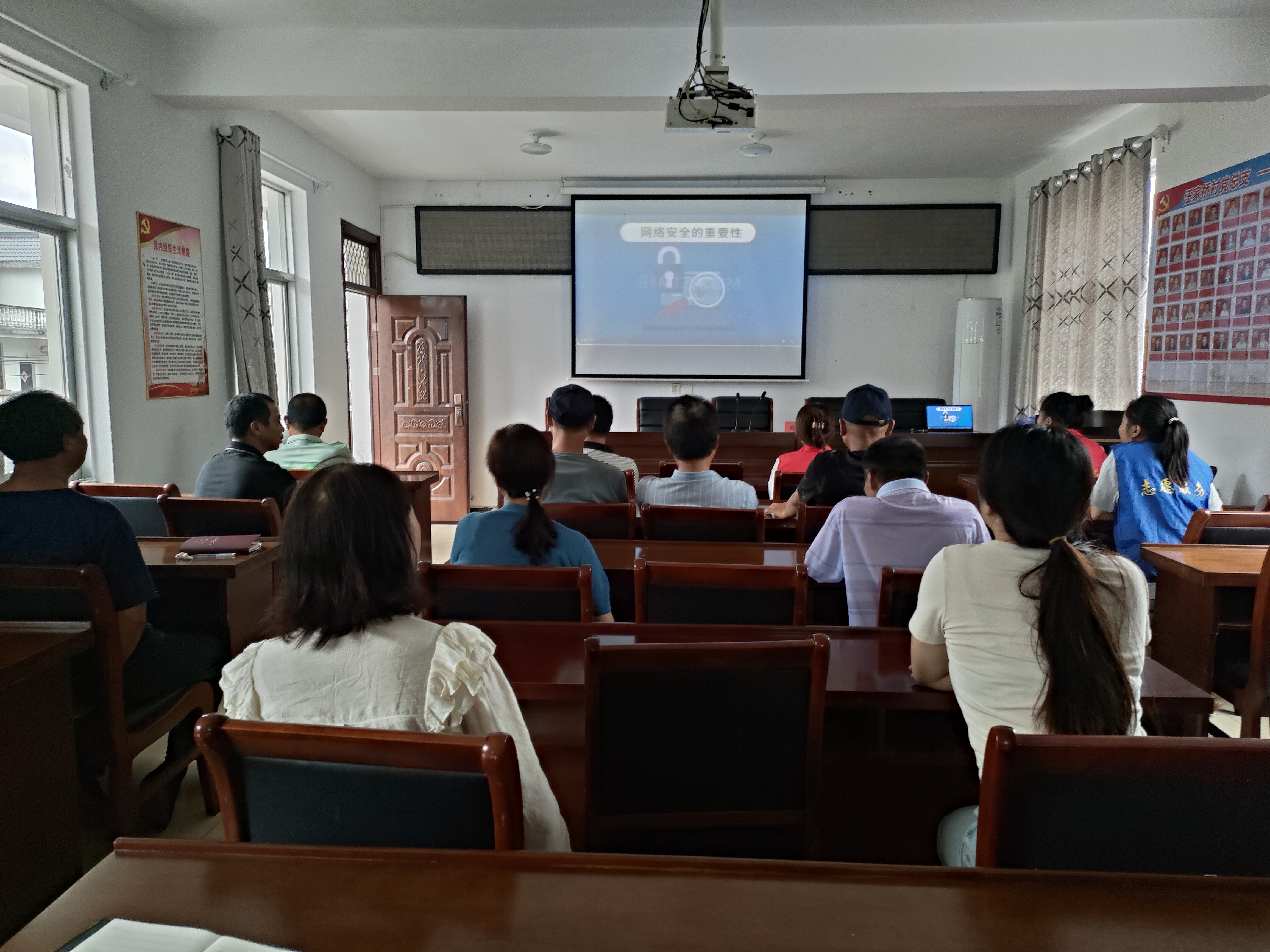 培训会上,通过观看网络安全知识视频,生动的电信诈骗案例剖析和真实视频展示,让大家更直观地了解认识到网络安全的重要性。现场村民组长作为村里的骨干力量,首先要了解诈骗分子惯用“伎俩”,学会识别并防范电信诈骗手段,再将自己所学、所想、所悟有关网络安全知识传达给村民,与村民共同打造安全、清朗的网络环境,筑牢网络安全防护网。