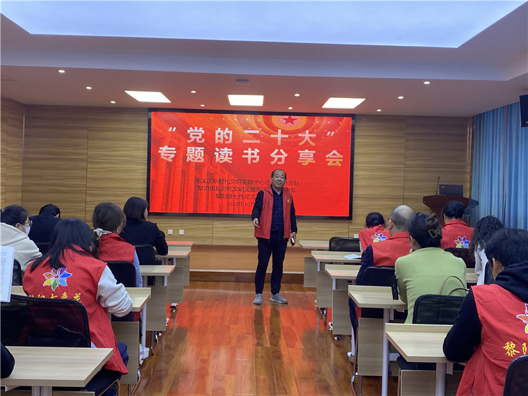 为推动各志愿服务团队全面、系统、深入学习党的二十大精神,引导广大志愿者更好领会党的二十大精神,10月25日,屯溪区黎阳镇新时代文明实践所在区新时代文明实践中心开展党的二十大专题读书分享会,全镇14支志愿服务队伍的30余名志愿者代表参加。