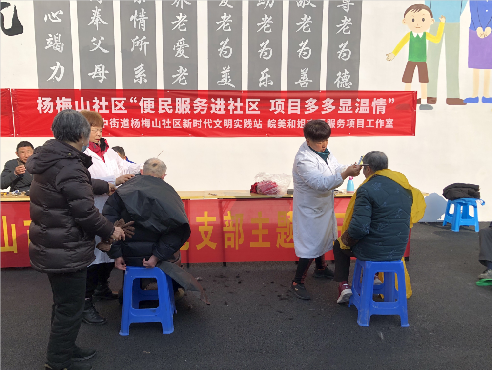 杨梅山社区有18个小区,其中老旧小区15个,服务居民6000余人,存在硬件设施老、物业纠纷繁、社会治理难,居民的满意度和获得感不强等问题。为充分实现社区管理的精细化和社会管理的扁平化,社区整合共建单位、非公企业和社会团体等资源,实施“皖美和姐”志愿服务项目,以“五老”志愿者为主,以网格党支部书记、小区热心业主和昱城公益志愿者为辅,联合非公企业和社会组织志愿者及共建单位志愿者,为解决居民矛盾纠纷调解提供一个新的平台,将志愿服务日常工作融入社区治理的“神经末梢”,把基层治理和服务群众与文明实践融为一体、相辅相成。