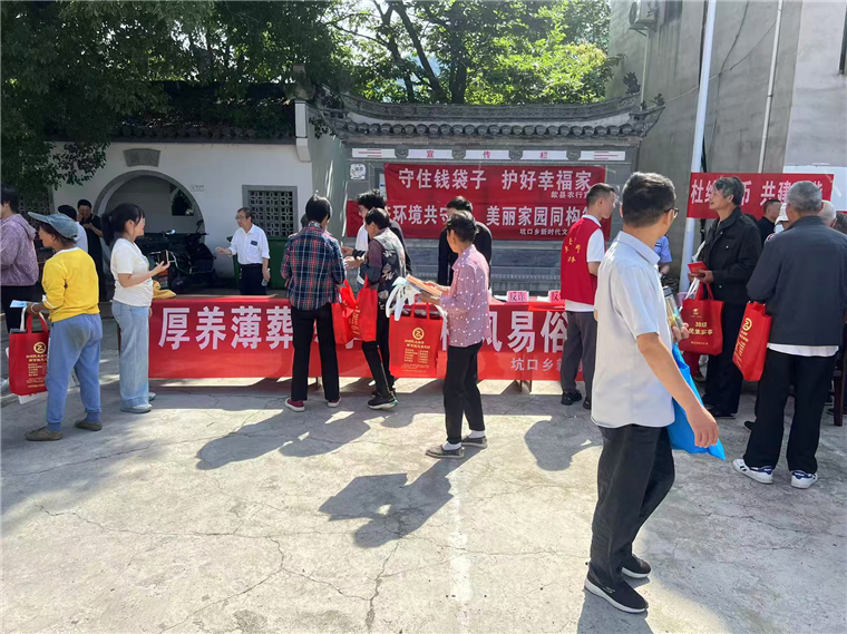 为深入推进殡葬改革,倡导文明节俭、生态环保的殡葬新风,破除陈规陋习,6月6日,歙县坑口乡新时代文明实践所联合坑口村红白理事会组织开展“厚养薄葬”主题移风易俗宣传活动,引导村民树立孝老敬老、节俭治丧的新风尚,共建文明和谐乡村。