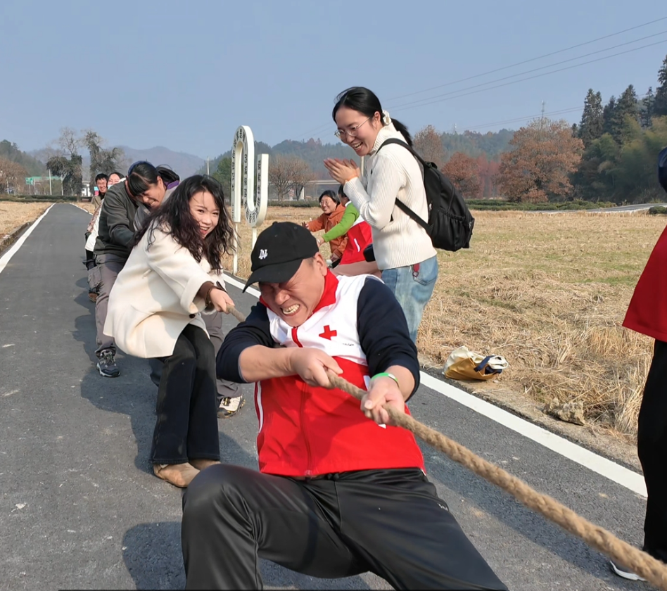 午后,队伍前往汪村“稻子熟了餐厅”开展助农就餐,并组织了一系列形式活泼、内容丰富的团队建设活动。手绘布袋寄托志愿情怀,知识竞答巩固专业能力,拔河比赛彰显团队合力,现场氛围热烈融洽,充分展现了红十字志愿者团结进取、昂扬向上的精神风貌。
